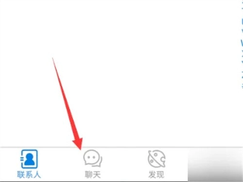2、在底部菜单栏找到“聊天”选项并点击,接着点击右上角的放大镜图标。