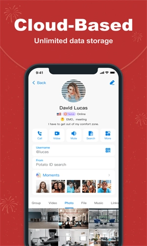 3、云存储功能:支持多设备之间的数据无缝同步,让您能在任意地点安全访问个人数据。您的聊天记录会被永久存储在土豆云端,从此无需担忧数据丢失问题。