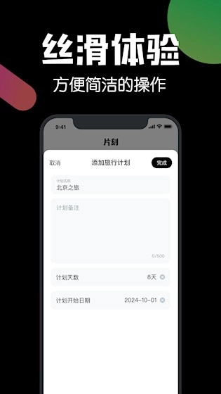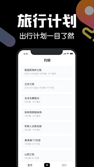 片刻是一款面向旅行爱好者打造的行程规划工具,能帮助用户轻松打理每一次出行。借助直观的操作界面与实用的功能组合,让旅行计划的制定变得简单又高效。不管是短途的周末出游,还是长途的跨国旅行,用户都可以在应用里清晰规划每日行程、查看路线地图,以及获取景点相关信息。