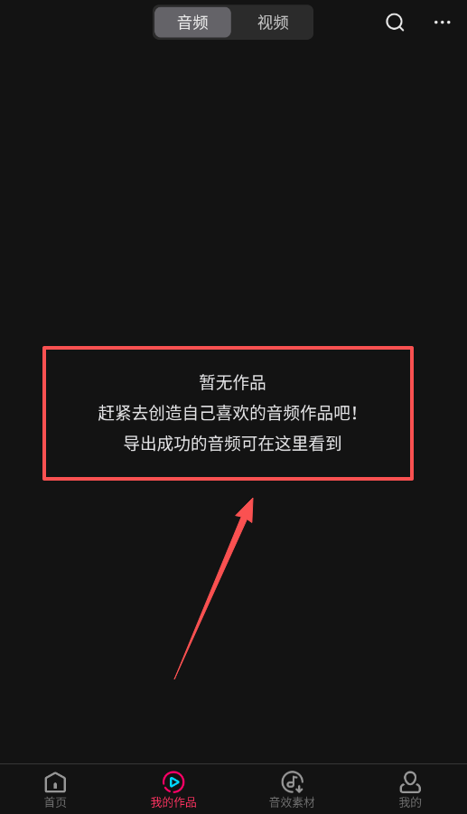 制作完成后,可前往“我的作品”页面查看导出的音频。若当前还没有作品,系统会提示你进行创作,该页面会集中展示所有已成功导出的作品。
