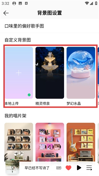 3、进入背景图设置页面后,大家可以根据自己的喜好,挑选【自定义背景图】分类下的样式来使用。