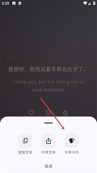 3、在分享选项框里找到并点击【分享卡片】选项,即可进入卡片编辑页面。