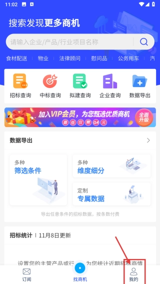1、进入招标分类,点击底部“我的”选项,进入个人中心页面。