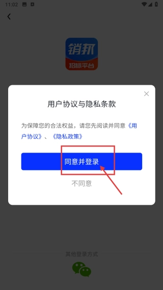 3、进入登录界面后,选择微信登录选项,此时会弹出用户协议与隐私条款的确认框。