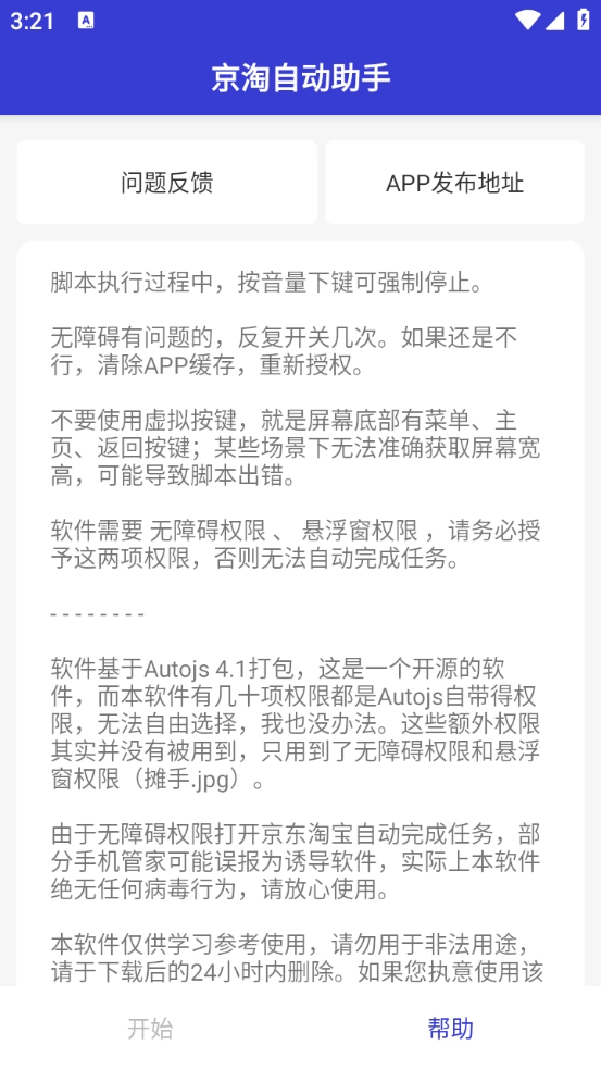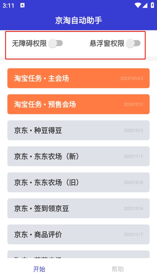 在本站安装好京淘自动助手后,需先获取无障碍权限与悬浮窗权限,不然部分功能将无法正常使用。