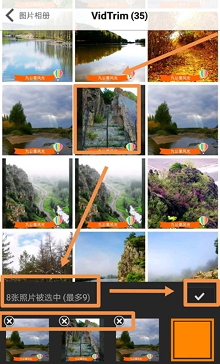 5. 在相册里逐个点击我们想要拼接的图片,被选中的图片旁边会显示对号标识。