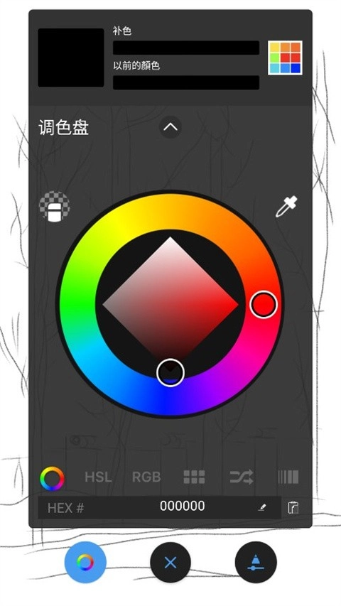 点击中间最下方的圆点,会弹出各类工具,接着点击右上角那个两张纸叠放的图标。此时会出现一条工具条,最左边的“+”号用于添加图层,它右边的按钮是向下合并图层,中间显示的是当前图层的透明度,再往右标有“正常”的选项是图层效果(可以自行尝试不同设置来熟悉它),最后是删除图层的按钮。图层的上下顺序调整,只需按住右侧图层栏里的对应图层上下拖动即可。