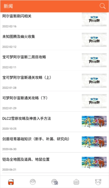 1、打开pokedex软件,进入后就能直接看到宝可梦相关的游戏文章和攻略。