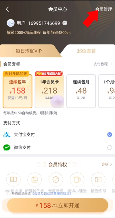 3、进入VIP会员中心后,点击右上角的会员管理选项