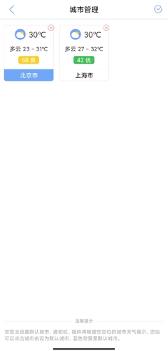 用户可以同时设置多个城市查看天气,也能删除不需要的城市。