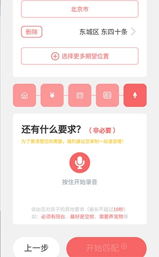 7、最后说明自己是否有额外要求,之后点击开始匹配,登录后就能发布租房信息了。