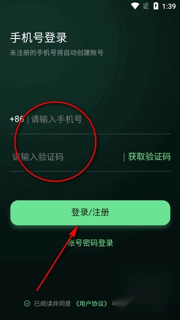 2、进入软件后先使用手机号验证码登录。