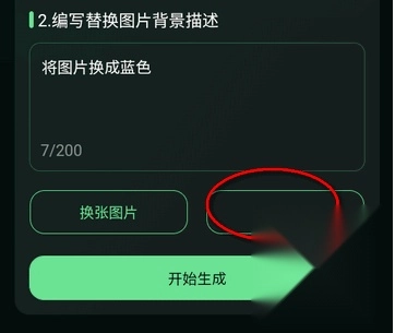 4、选好对应功能进入后,上传一张照片,接着编写需要替换背景的相关描述,最后点击开始生成即可。