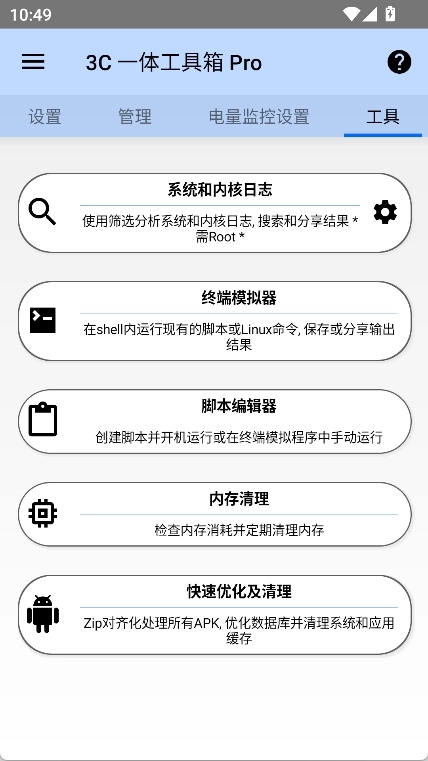 3C一体工具箱pro安卓版是一款魅力十足的万能掌上系统优化工具。3C一体工具箱的最新版本整合了各类实用工具与精美小部件,提供电量显示、系统调整、多任务切换等丰富功能,无论是深度优化系统还是日常管理设备,这款3C一体工具箱都能精准满足用户的需求!
