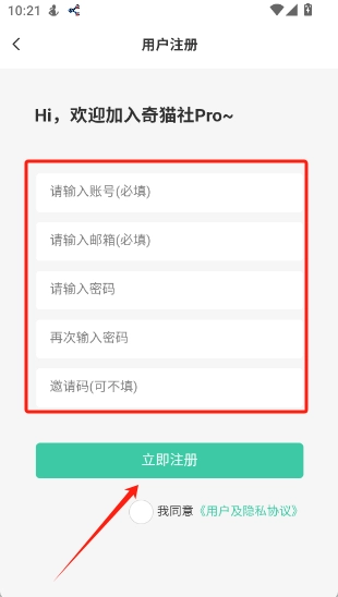 6、输入账号、邮箱并设置密码,接着点击“立即注册”按钮。