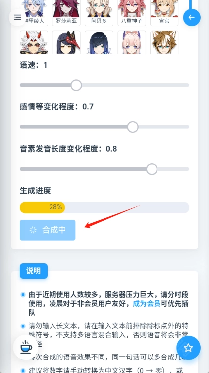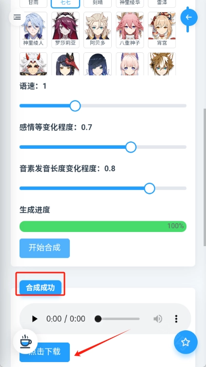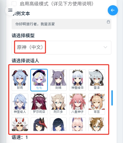 3. 操作便捷,覆盖原神全角色语音资源,可轻松合成心仪语音。