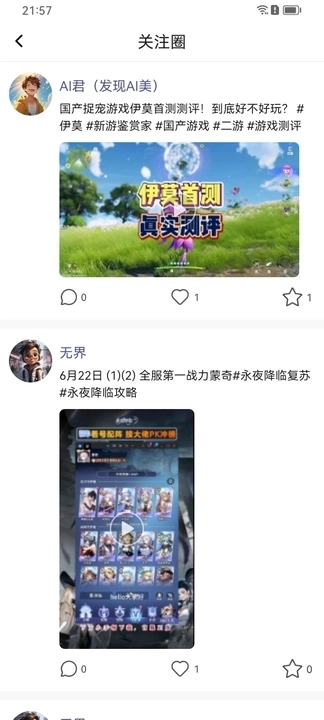 因界社区软件上汇聚了小伙伴们分享的各类游戏资讯与攻略视频,点击就能查看详细的游戏视频内容。你可以通过点赞、评论的方式,和作者以及其他小伙伴互动交流,既能学习更多游戏技巧,又能结识不少新朋友,还能加入游戏话题小组,和大家一起探讨游戏相关的话题!