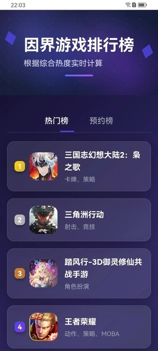 5、在游戏榜单界面,大家可以查看热门榜和预约榜,这些榜单能为大家挑选游戏提供参考。