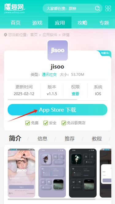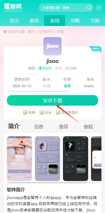JISOO的入口地址为https://jisoo.fan/,但部分缺乏网络基础的安卓用户可能难以操作,原因是在Google Play中安装应用流程较为复杂,因此建议安卓用户直接前往魔趣网https://m.mfunz.com/soft/6915.html获取JISOO安装包。
