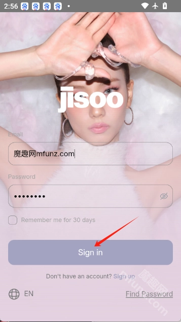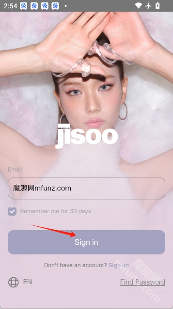 1.jisoo通过邮箱完成注册后,回到jisoo的登录页面,输入该邮箱地址,然后点击【Sign in】按钮。