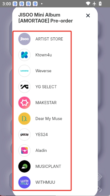 2.点击左下角购物车图标,可以预购jisoo专辑