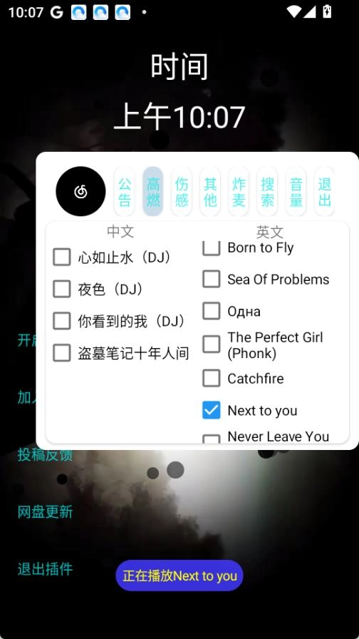 3. 在弹出的菜单里挑选你喜爱的音乐分类,就能进入听歌模式了。