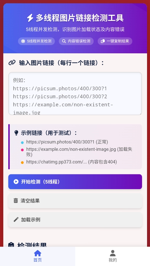 1. 多线程检测:支持同时开启5个线程对图片链接进行并发校验,以提升处理效率。