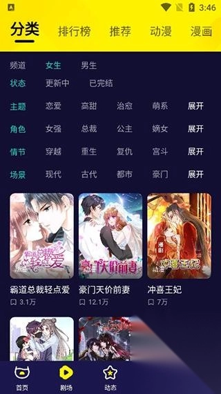 3、里面的分类十分丰富,总裁、古代、穿越等题材一应俱全,大家可以根据喜好随意挑选。
