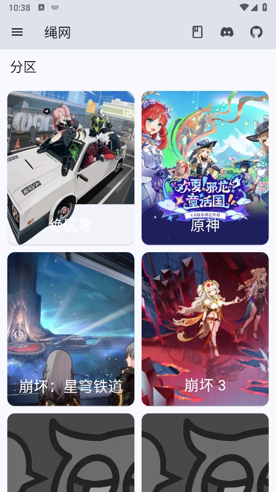 4、点击“分区”,提供了不同游戏的游戏资讯,