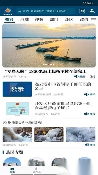 连云港发布平台是一款专注于本地化服务的新闻资讯应用,由连云港报业传媒集团打造,致力于为用户提供权威及时的本地信息。该应用整合了新闻动态、生活服务、政务办理等实用功能,通过图文、视频等多种形式展现连云港的最新发展。无论是了解城市热点、查询便民信息,还是参与网络问政,都能在这里快速实现。平台内容每日更新,确保用户获取第一手资讯,同时支持个性化推荐,让阅读更高效。如果需要安装,可通过安全便捷的渠道获取。