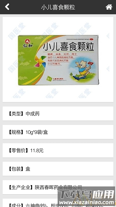 6.中成药信息涵盖国家基本药物和常用非处方药,附带药品图片、成分说明、用法用量以及生产厂家等相关信息。