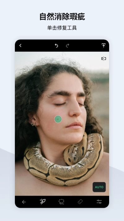 有了斑点消除工具,可以触摸细小瑕疵,永久删除。