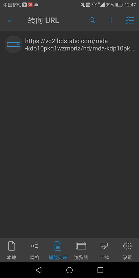 在打开的nplayer pro安卓版界面里,点击底部的【播放列表】进入新页面,接着点击页面上方的【+】(即下图绿色箭头指向的区域)