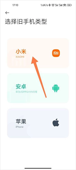 在旧手机类型里选择【小米】,具体根据旧手机的实际类型来挑选。