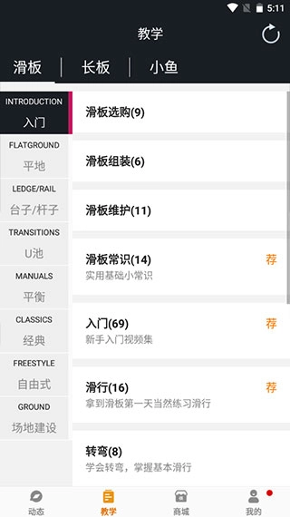 软件里收录了不少实用的滑板技巧,从选购滑板到实际练习,都有详细的教学内容。
