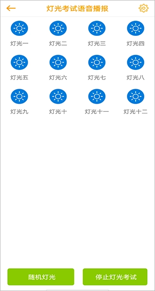 2、进入科三灯光模拟模式后,点击相应的灯光选项,即可听到考试中的标准语音播报。同时,还可使用下方的随机播报按钮,进行多种灯光场景的练习。