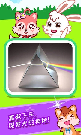 通过丰富的内容和生动的动画,它能引导孩子们主动思考与探索,助力观察力、思维能力及动手能力的培养。同时,它着重培育孩子的科学素养与科学方法,让他们在成长早期就建立起科学思维,掌握解决问题的能力。宝宝科学光学篇的突出之处在于多样化的教学形式:除了传统的文字、图片教学,还借助动画与互动方式呈现知识,使学习过程更生动有趣。孩子们既能通过动画了解光的传播规律、彩虹的形成原理,又能以互动形式参与学习,从而深化对知识的理解与记忆。