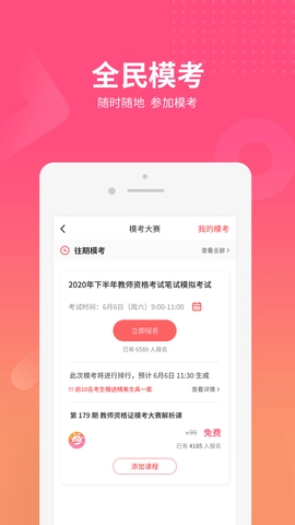 2、全民模考,参加线上考试,与全国各地区教师一起考试竞争。