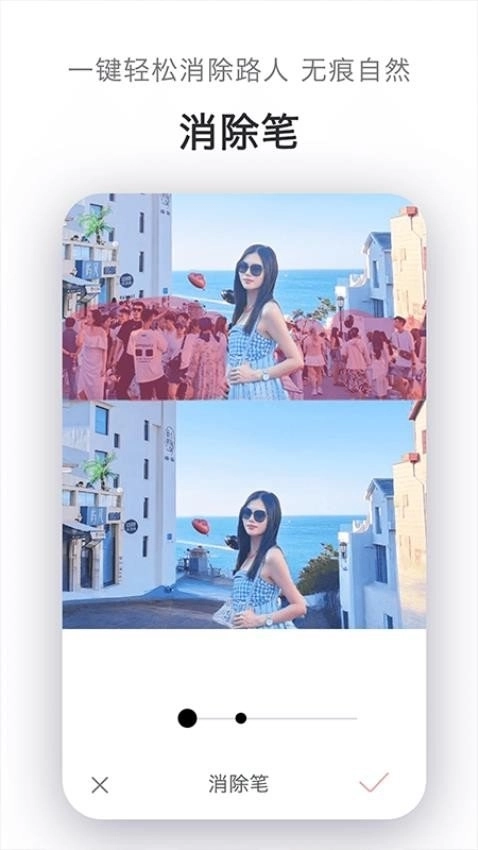软件配备了消除笔功能,能帮助用户轻松去除图片中的路人。