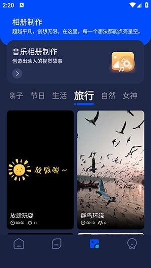1.新增音乐相册功能,借助模板就能轻松制作出自己心仪的音乐相册。