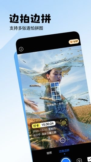 拍照水印图片可灵活拼图,拼图模板编辑功能丰富,支持一键分享至工作群与项目组,助力高效完成水印打卡,更清晰地反馈现场真实情况。