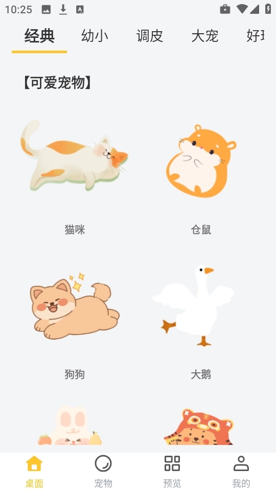 2、然后点击下方的“桌面”选项,就能看到各种各样可爱的宠物,种类十分丰富。