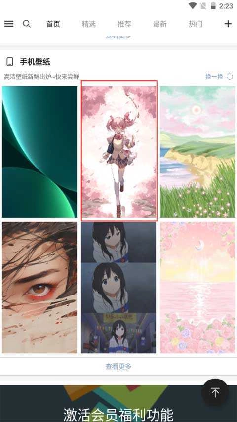 1、打开后默认进入【首页】,挑选一款自己喜爱的手机动态壁纸,然后点击对应的图片。