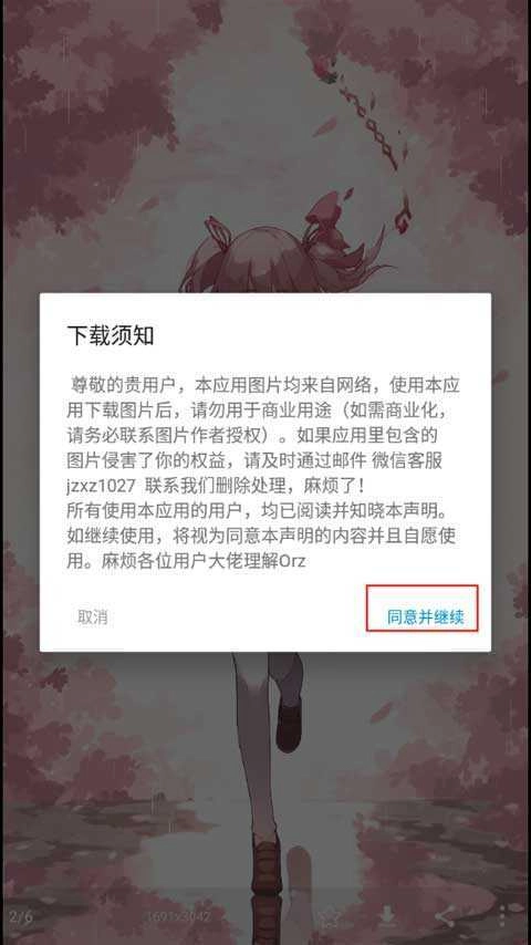 2、待壁纸加载完成后,点击下方按钮获取图片资源,然后点击同意并继续。