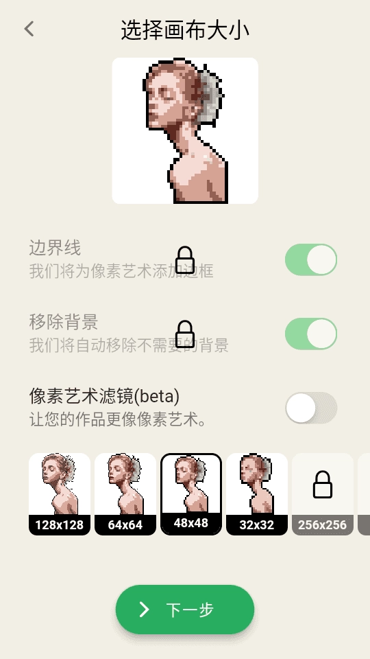 pixelme安卓版你可以根据自己的喜好调整生成的像素头像的分辨率,对比度和饱和度,用户可以随时使用它,帮助创建你最喜欢的头像效果软件里面提供各种不同的元素类型,用户在这里可以根据自己的喜好选择不同的风格。