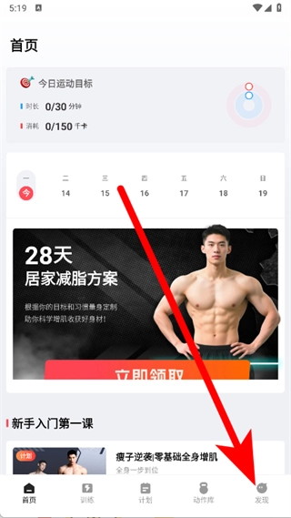 打开开练,点击底部发现。
