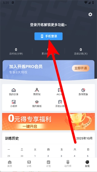 在发现页面,点击手机登录。