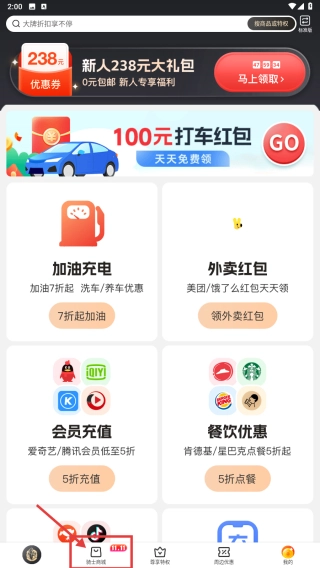 打开电商优惠类应用后,点击底部的折扣选项,即可进入折扣板块。