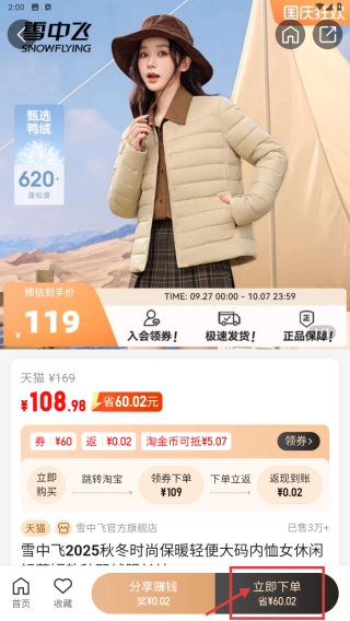 在商品详情页面,点击“立即下单”按钮,即可开展商品购买流程。