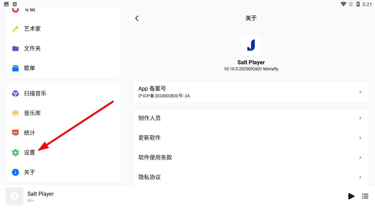 在音乐播放软件的主界面中,找到左侧的设置选项并点击,即可进入设置页面。